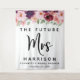 Moderne "La future Mme" personnalisé photobooth tapisserie pour votre douche de mariée. La bordure supérieure présente des fleurs et de la verdure aquarelles bordeaux, rouges et roses blush. "Mme" est écrit dans un grand script élégant, et vous pouvez personnaliser avec votre futur nom de famille marié, prénom et date de douche.