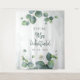 Grande décoration murale de fête et bannière pour une thème botanique moderne et tendance pour un shower de mariage. Avec verdure eucalyptus et fond aquarelle rose pâle. Modifiez facilement les détails en cliquant sur le bouton "Personnaliser" ci-dessus.