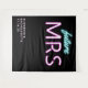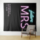 Tapisserie de photobooth noire personnalisée "future Mrs" moderne et élégante pour votre enterrement de vie de jeune fille, avec "future" et "MRS" écrits en écriture sarcelle bleue et rose chaud avec un effet néon. Vous pouvez personnaliser avec votre nom et la date de la fête. Le coin inférieur est laissé vide pour une zone pour que vos invités prennent des photos.