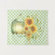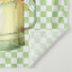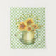 Pretty country / farmhouse design fea watercolor illustration of a garden watering can filled with a bouof sunflowers on mint green and white checkerboard background