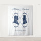 De délicates roses bleues et blanches aux accents de style Bridgerton Regency entourent deux camées masculins classiques, tous dressés contre un arrière - plan blanc immaculé.