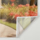 C'est une tapisserie carré qui a une illustration d'un belvédère dans le parc.