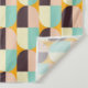 Geometric pattern with overlapping half-circles in teal, cream, brown, and peach on an orange background, creating a vibrant and retro feel.