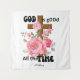 God is good all the time floral cross Christian saying tapestry Scripture verse gift for Christian. This beautiful pink floral gift idea for her.