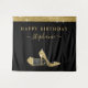 Elégant et chic moderne or et noir Joyeux Anniversaire Photo Contexte Selfie Arrière - plan Tapestry Banner avec Faux Parties scintillant Jaune or haut talon talon talon chaussures et personnalisation script de calligraphie cursive.