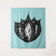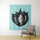 Tapisserie de fleur de Goth - art floral avec trous brosse à encre ombragée en noir et blanc sur arrière - plan bleu et de nombreux points.