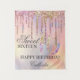 Cette bannière de tapisserie d'anniversaire sweet sixteen girly et glamour est parfaite pour une fille girly élégante et branchée. Elle présente de fausses gouttelettes de paillettes de couleur arc-en-ciel scintillantes imprimées sur un grand "16" en fausses paillettes, avec un fond en feuille holographique iridescent. La typographie est un script élégant cursif avec une police serif moderne pour correspondre. La palette de couleurs comprend le rose, le pêche, le bleu, le violet, l'or et le corail. C'est chic, joli, unique et luxueux.