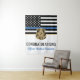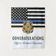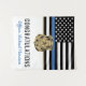 Cette conception comprend un drapeau de la police avec des rayures noires et blanches, ainsi qu'une fine bande bleue. Une excellente façon de féliciter la nouvelle académie de police diplômée. Customiser avec le nom de l'agent d'application de la loi diplômé en or. Célébrez cette étape importante dans le style!