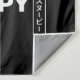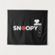 Snoopy se détend contre un rocher au-dessus de son nom en anglais et japonais.