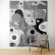 Différentes nuances de gris, noir et blanc, différentes formes fantaisistes, compositions géométriques modernes et ludiques.