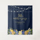 Célébrez votre anniversaire de mariage avec cette tapisserie personnalisée. Vos invités apprécieront prendre une photo avec ce décor de fête sophistiqué et se souviendront de votre jour spécial. Le design présente une typographie chic "50e Anniversaire", des guirlandes lumineuses et un fond floral. L'invitation et les fournitures de fête assorties sont disponibles dans ma boutique BaraBomDesign. Merci !