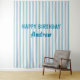Celebrate in style with this modern striped Happy Birthday wall banner, personalized with your name for a truly memorable party centerpiece. Designed in a clean, timeless vertical stripe pattern with a soft color palette, this large 88" x 104" backdrop instantly transforms any space into a picture-perfect celebration. Whether you're hosting a kids birthday party, baby shower, or milestone event, this custom banner creates a beautiful focal point for photos, dessert tables, or party décor. Printed on high-quality material with vibrant colors and crisp text, it’s easy to hang and makes a big impact indoors or outdoors. Available in 5 stylish color options(but click on the Zazzle design editor to change to any color), this customizable birthday banner is the perfect way to add a personalized touch to your special day.