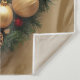 Soft pine textures and red accents create an elegant holiday stage backdrop mood.