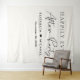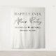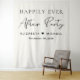 Tapisserie photo couleur crème chic pour votre réception de mariage ou fête de fête avec "Happily Ever After Party" dans un mélange de typographie simple et un script moderne et vos prénoms et votre date de réception.