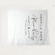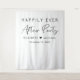 Symbole d'accueil de mariage blanc chic et tapisserie en toile de fond avec "Happily Ever After Party" en typographie simple et un script moderne élégant, vos noms unis par un coeur et votre date de réception.