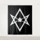 Tapisserie avec un hexagramme unicurifère massif Thelema blanc sur un arrière - plan noir. Personnalisable .