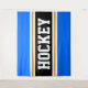 Cette conception sportive et sportive présente du texte HOCKEY en gras à l'intérieur d'une large bande noire surlignée avec deux bandes de course blanches et jaunes contre des bandes extérieures bleu vif. Le texte de cette conception peut être personnalisé.