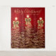 Elegant Merry Christmas / Happy Holidays "Photo Booth Backdrop" Gold Trees with bows on red.