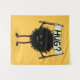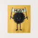 Tapisserie serrée avec un mignon monstre maléfique - personnage poilu étincelant de la famille du Malin Flower Bug. Il porte un signe avec le monde écrit à la main "Hug ?". Cette créature bizarre et sympathique a de jolies petites chaussettes sans orteils juste pour garder ses pieds au chaud dans ce monde inamical.