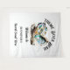 De belles huîtres iridescentes ouvertes coquilles de mer ont une incrustation de nacre et une perle reposant à l'intérieur qui semblent scintiller et briller sur un fond blanc qui a des modèles de texte noir modifiables pour votre libellé personnalisé. Cette suspension murale est idéale pour une fête ou un événement sur le thème de la plage, nautique, marin, sous la mer ou des fruits de mer.