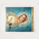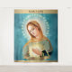 Flame of Love of the Immaculate Heart of Mary Icon avec haut et bas bande or avec logo sur le dessus. arrière - plan de livre turquoise.