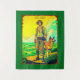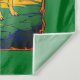 Tapisserie sur la carte tarot, "The Fool", représentant un aventurier confiant debout sur une falaise, symbolisant de nouveaux débuts. Habillé d’une tenue robuste, il est accompagné d’un chien loyal. Le paysage vif et le ciel doré transmettent liberté, optimisme et courage d’embrasser les chemins inconnus de la vie.