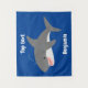 Un grand requin blanc heureux et affamé nage dans l'océan. Dessiné dans le style d'illustration de dessin animé mignon sur un arrière - plan bleu pour une journée amusante!