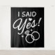 Texte ludique et mignon "J'ai dit oui !" avec un graphique de double anneau. Utilisez tel quel ou ajoutez votre texte. Idéal pour les douches de la mariée, les fêtes de fiançailles ou les séances photo de mariage.
