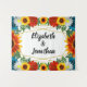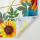 Design floral élégant et coloré pour un événement estival jardin. Caractéristiques turquoise bleu roses, marguerites blanches, fleurs sauvages rouges et tournesols avec cadre géométrique or