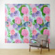 Motif d'aquarelle fait d'un geai bleu et de diverses fleurs - hydrangée, pivoine, et anémone.