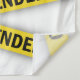 Une cassette de police jaune avec des lettres Je suis offensé