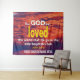 Dieu a tant aimé le monde Église Tapisserie. Parole chrétienne inspirante fond d'écran de l'église avec le verset biblique populaire de Jean 3:16 - CAR DIEU A TANT AIMÉ LE MONDE QU'IL A DONNÉ SON FILS UNIQUE. Le nom de l'espace facultatif est PERSONNALISABLE, vous pouvez donc PERSONNALISER en remplaçant par le nom de votre église/famille ou le texte de votre choix, ou simplement supprimer. Cette tapisserie chrétienne ferait un excellent fond pour votre maison, votre église ou votre organisation à vocation spirituelle. D'autres versets bibliques populaires sont disponibles. Veuillez me contacter si vous souhaitez ajouter le logo de votre église ou de votre entreprise. Choisissez parmi une large sélection de créations chrétiennes sur cartes, décoration intérieure, vêtements et cadeaux conçus par Berean Designs.