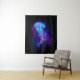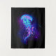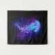 Grande méduse bleue, artistiquement dessinée, brillante, brillante, avec de longues tentacules sur arrière - plan noir avec bioluminescence violette. Méduse brillante.