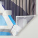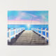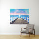 Tapisserie sur l'illustration d'une jetée, clôturée en blanc, s'étendant vers une mer aquamarine, sous un ciel rose teinté