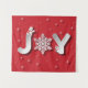 Le mot joie avec un flocon de neige pour le "o" avec plus de petits flocs de neige, de pingouin et un ours polaire.