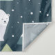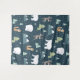Tapisserie au motif fantaisiste. Ours polaires, rennes, arbres, renards et flocons de neige. Sur un arrière - plan vert foncé.