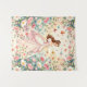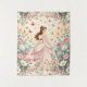 Jolie princesse avec diadème en robe rose, avec motif fleurs et papillons.