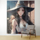 Jolie sorcière en robe blanche portant une tapisserie casquette pointue. Parfait pour entrer dans l'esprit d'Halloween.
