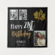Joyeux 21e anniversaire Gold Foliage 3 Photo fond. Un élégant feuillage doré sur un arrière - plan noir. Ajoutez vos photos - vous pouvez utiliser des photos anciennes et nouvelles. Ajoutez votre nom et votre âge, et faites votre propre décor de fête d'anniversaire.
