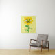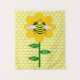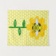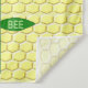 Cette superbe tapisserie présente une image graphique d'une mignonne abeille bourdon jaune avec des rayures noires, des yeux, des antennes et des pattes. Elle a de jolies ailes bleues et blanches. L'abeille est assise au milieu d'un tournesol jaune doré. La fleur a une tige verte et trois feuilles. Le message "joyeux jour d'abeille" apparaît réparti sur les trois feuilles. L'arrière-plan est composé d'un motif de nid d'abeille jaune.