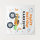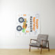 Happy Birthday Modern Monster Car Trucks Personnalisé Nom Tapestry présente le texte "Happy Birthday (ajoutez le nom)" avec un monstre de camion coloré. Fabuleux pour les fêtes d'anniversaire des enfants. Conçu par Evco Studio www.zazzle.com/store/evcostudio
