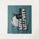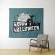 Happy Halloween dessin de texte avec le cimetière et la décoration de chauves-souris à pleine lune sur arrière - plan bleu