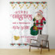 Joyeux Noël et Bonne Année Tapisserie Fond de logo d'entreprise. Faites éclater votre fête avec ce classique réchauffant du Père Noël avec des houx, des éléments suspendus dorés, des flocons de neige et un texte de couleur viva magenta. Cela sert d'accent mural, de toile de fond et d'un photomaton parfait pour que vos employés puissent en profiter. Personnalisez dès maintenant le nom et le logo de votre entreprise ! Achats intelligents. Grands Designs.