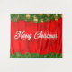Tenture Joyeux Noël en rouge avec feuillage et décorations