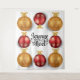 Apportez l'esprit de Noël chez vous ou au bureau avec ce magnifique graphique vectoriel tridimensionnel représentant une fausse étoile dorée et des boules de décoration de sapin de Noël ornées de flocons de neige rouges et dorés. Ils semblent jaillir de l'arrière-plan et encadrent la lettre en typographie décorative qui indique "Joyeux Noel" en noir en français. Ce sont des éléments idéaux pour vos célébrations festives de fêtes de fin d'année à la maison ou au bureau.