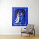 Tapisserie en deux femmes éthérées représentant le signe zodiaque Gemini. Habillés d'élégantes robes blanches et bleues, ils se tiennent en miroir, tenant la main sous un ciel étoilé. Le symbole Gemini apparaît au-dessus d'eux évoquant l'harmonie céleste et la dualité.
