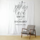 Cette toile de fond en mariage de script noir et blanc élégant peut être personnalisée avec toutes vos informations spéciales de jour de mariage. Conçu par Thisisnotme©