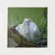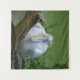 Dans cette image captivante, un pélican majestueux est assis sur une rondelle patinée qui s'étend dans l'eau recouverte d'algues vives. Le regard intense du Pélican et le plumage complexe créent un moment serein de la beauté de la nature, figé dans le temps pour votre admiration.