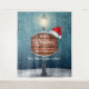 Apportez l'esprit de Noël à votre maison ou à votre bureau avec cette belle illustration d'un lampadaire brillant avec une lanterne au sommet qui brille la nuit. Le poteau a une planche en forme de coquille Saint-Jacques en bois attachée à lui sur laquelle apparaît le message festif "Joyeux Noël et Bonne Année" et un chapeau de Père Noël rouge et blanc. Il est entouré de flocons de neige blancs qui tombent doucement et des branches d'arbres qui ont perdu leurs feuilles. Un emplacement pour votre entreprise ou le nom de votre famille apparaît sous la lanterne.