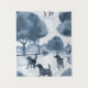 Chiens marchant sous de grands arbres dans un cadre de parc.